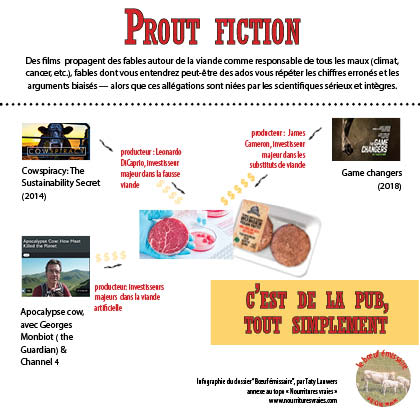La deuxième étant que le contenu de ces films repose sur des allégations fictives, niées par les scientifiques sérieux et intègres. Ces films sont, tout simplement, de la pub déguisée pour la viande de labo ou les faux-burgers.