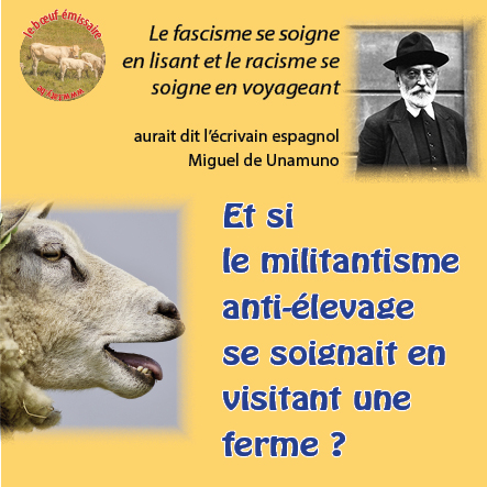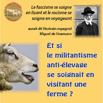Que fait-on avec un végane ou un boeuf basheur enfermé dans ses mantras, inconscient d'être victime du grand fake? On l'emmène à la ferme, tiens!