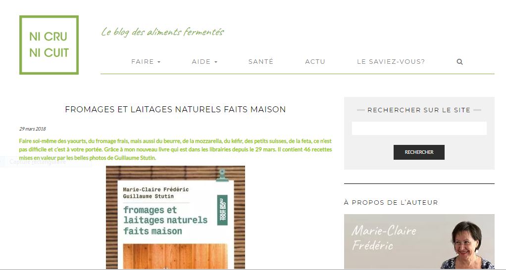 13.8 Dans ma collection de livres sur les fromages maison, j'apprécie tout particulièrement ce livre que je viens de découvrir : Fromages et laitages naturels faits maison, chez les éditions Alternative, par Marie-Claire Frédéric, créatrice du blog nicrunicuit.com, historienne de l'alimentaire. Ce dernier livre de sa plume, détaillé et documenté (dont toutes les recettes semblent testées et retestées, aussi! c'est rare), reprend l'essentiel des interventions sur son blog.