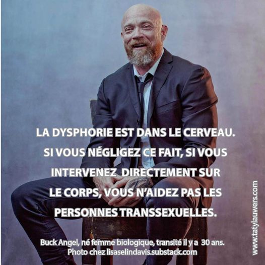 16.8.2023 "La dysphorie est dans le cerveau. Si vous négligez ce fait, si vous intervenez directement sur le corps, vous n’aidez pas les personnes transsexuelles", dixit Buck Angel, transsexuel connu.