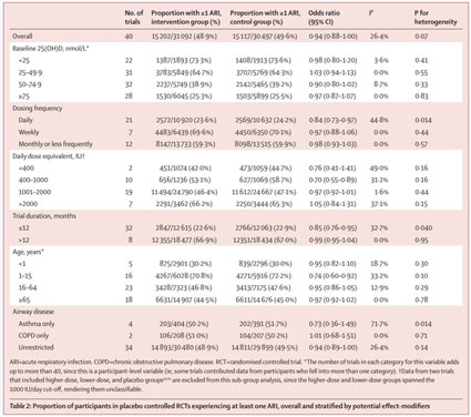Dixit: "La prise de vitamine D vous rend-elle moins susceptible de tomber malade ? Il s'agit de l'ensemble de données le plus vaste et le plus à jour : 46 essais randomisés portant sur 65 000 personnes au total, visant à déterminer si la supplémentation en vitamine D (par rapport au placebo) prévient les infections respiratoires. La réponse ? Aucun effet."