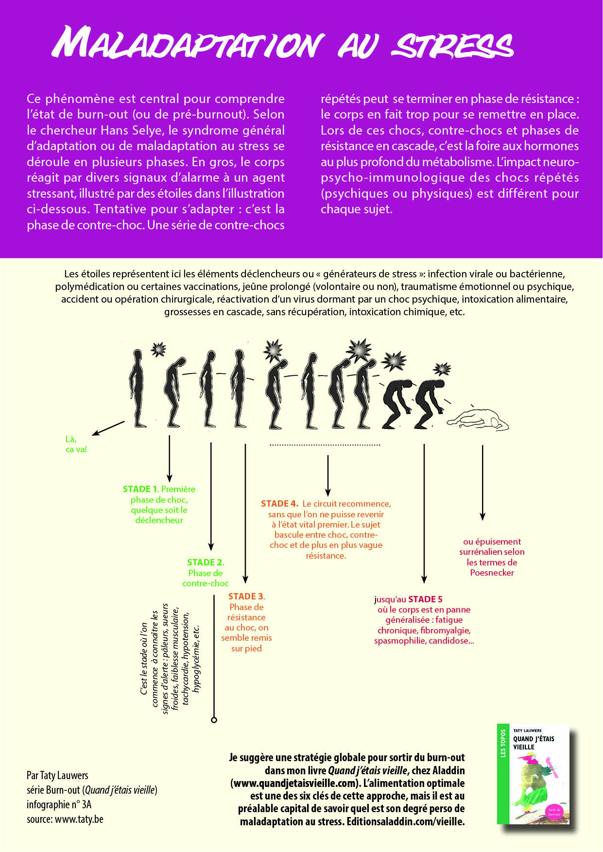 Maladaptation au stress . Encore un critère à exposer avant d'entrer dans la stratégie en soi. Tant que votre client/patient ne comprend pas dans quel stade se trouve son organisme, je gage qu'il ne donnera pas l'énergie et l'adhésion voulue. Dans la stratégie globale pour sortir du burn-out que je suggère dans ce topo, il est au préalable capital de savoir quel est le degré de maladaptation au stress de l'épuisé chronique. Difficile à faire accepter à une personne résiliente qui a tant eu l'habitude de résister aux stress... jusqu'au dernier évènement déclencheur, qui fut la goutte qui a fait déborder le vase.