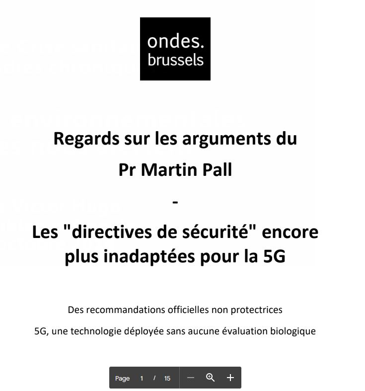 Un nouveau petit tour chez Ondes.brussels. Vous y trouverez un résumé de l'intervention du professeur Martin Pall, professeur émérite de biochimie et de sciences médicales fondamentales à la Washington State University (USA), lorsqu'il a parlé au Parlement Européen dans le contexte: "5G, risques sanitaires et principe de précaution : de nouveaux arguments” (octobre 2019).