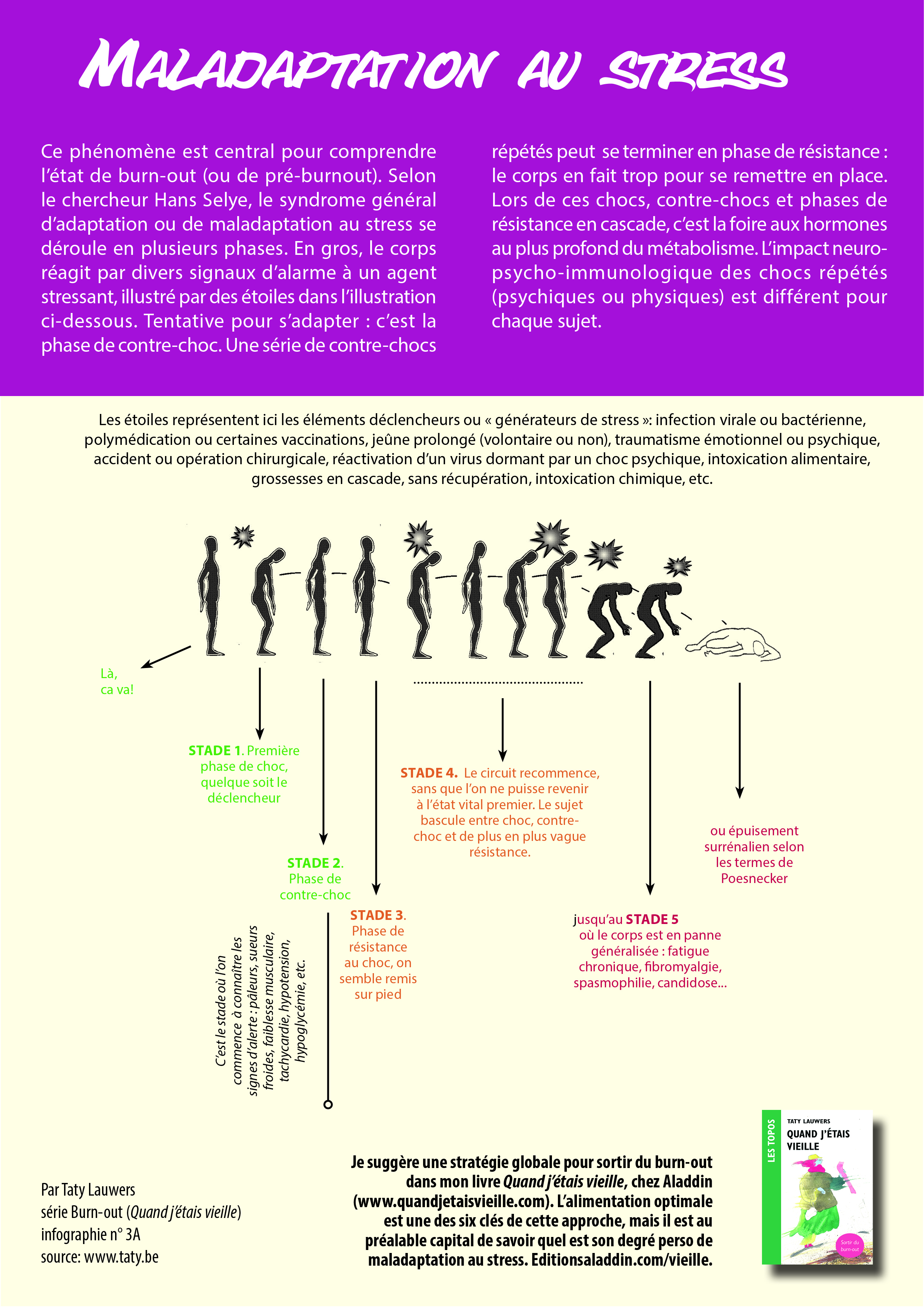 <a href="https://www.taty.be/vieille/maladaptationstress.html"><img src="https://www.taty.be/vieille/qv3Amaladaptationstress_tatybeMED.jpg" title =Maladaption au stress, infographie nr 3A, par Taty Lauwers" alt="Maladaption au stress, infographie nr 3A, par Taty Lauwers" border="0" style="max-width:100%; min-width:300px; margin: 0 auto 20px auto; display:block;"> <p style="max-width:800px; min-width:300px; margin:0 auto; text-align:center;"> Maladaption au stress, infographie nr 3A </a> (sur le site www.taty.be)</p>