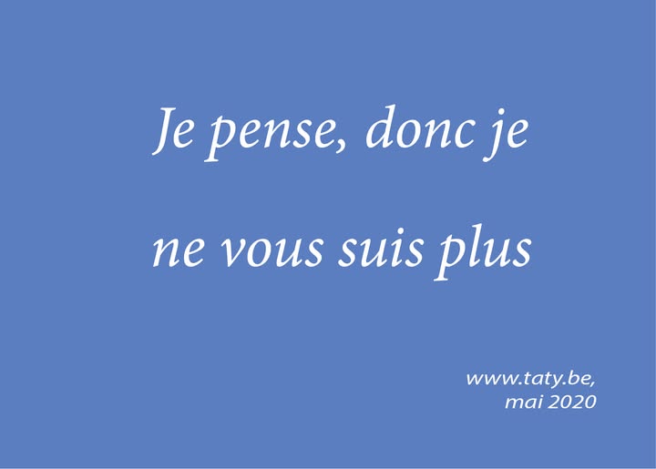 Billet inclus dans le dossier "Le circus virule (ou ce que le covid-19 est venu nous dire"), amorcé début 2020. Répertoire "non-food" de ce site. Je mets ma casquette de Jiminy Cricket, comme pour le dossier à charge contre les Gafam. Je transfère certains des billets écrits en brouillon sur fb pendant le confinement. On les retrouve via le sommaire.4.5.2020 Un petit hommage à ma voisine Spelmans Patricia, que je viens de croiser: «je lis tes billets, je ne suis pas d’accord, mais c’est un regard intéressant». Elle n’est pas énervée, pas fâchée, juste pas d’accord. Oh, le bonheur!
