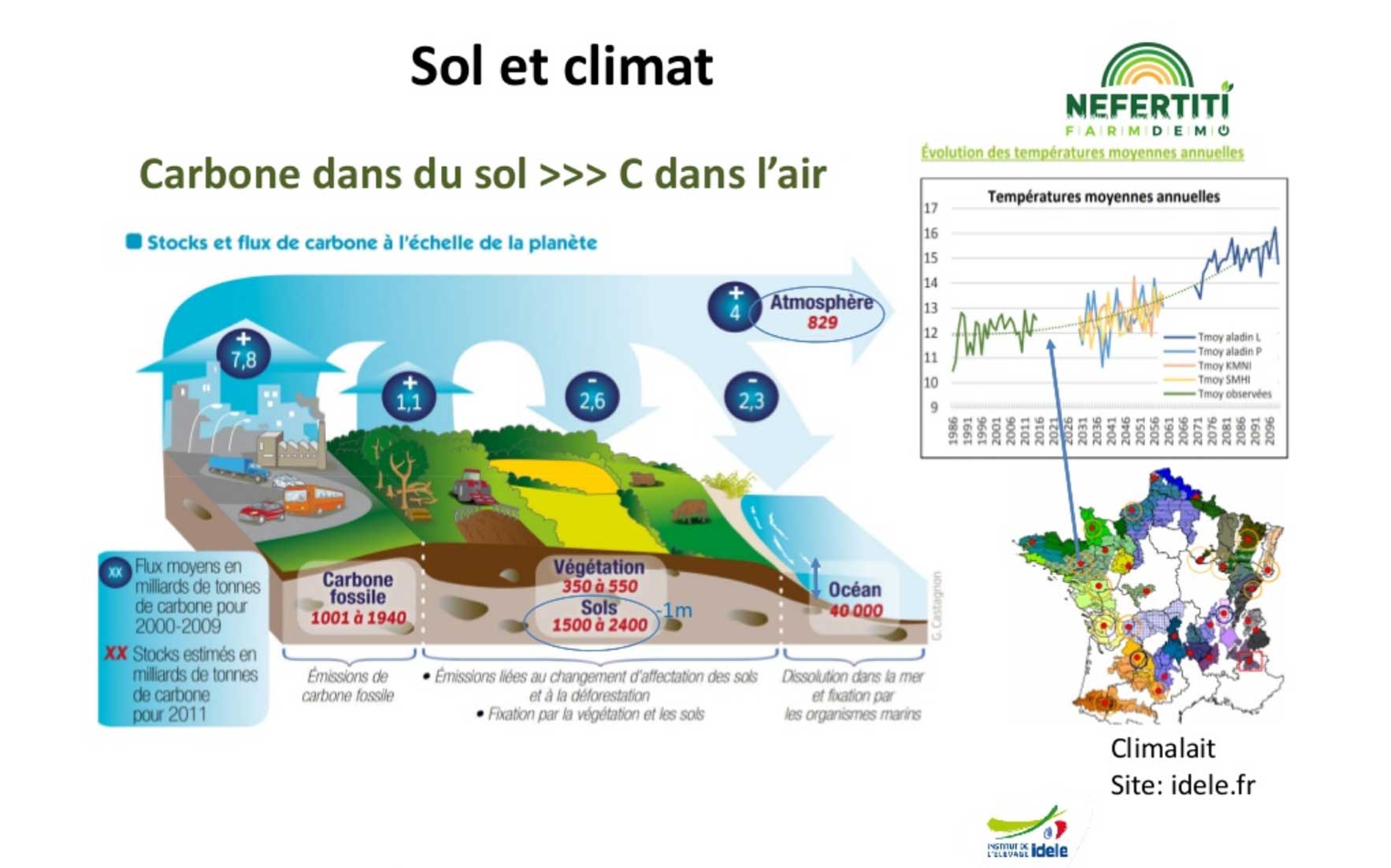 PAGE 37 DU LIVRE. A tous ceux qui croient avoir tout compris de l'agriculture quand ils ont planté une graine dans un pot, à tous ceux qui produisent des graphiques charmants mais trompeurs (où la séquestration du carbone par les prairies n'est pas prise en compte), à tous ceux qui continuent à répéter que l'agriculture pourrit le climat, voici une illustration - les prairies: accroitre le stockage du carbone et réduire l'impact de l'activité agricole sur le climat