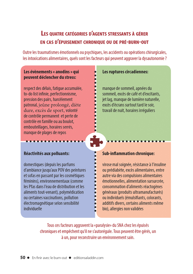 Selon le dr Poesnecker, que je relaye dans le topo expert, les agressions sociales et psychiques ne sont pas les seuls microchocs auxquels le système nerveux autonome (SNA) doit faire face et qui, parfois, épuisent l’organisme, le rendant inopérationnel. Voyons quelques facteurs trop souvent oubliés par les théoriciens du SNA et très négligés par les études en nutrition. Faute de les envisager, le praticien se cantonnera à soigner la dépression, alors que celle-ci n’est que le résultat de la décapilotade physiologique.