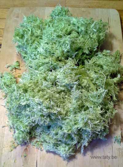 Les déchets après que j'ai passé les cosses à l'extracteur de jus Jazz, équipé du cône à jus. Plus rien à en faire, zoup au compost.