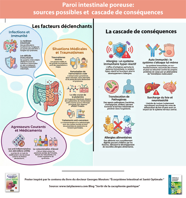 Paroi intestinale poreuse: 30.11.25 Nouveau poster, qui sera inclus dans la prochaine édition digitale du topo expert. Poster nr 11, explicitant des principes du livre du docteur Mouton " Écosystème Intestinal et Santé Optimale", chez Résurgence (Pietteur).
